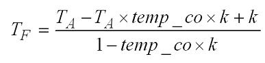 這裏要注意的一件事情是電感器的功耗是其線圈電阻的函數,後者會隨著溫度發生變化。因此,需要考慮計算電感器在給定RT的TF。將RT的等式插入電感電阻與溫度等式並求解TF可以得出: