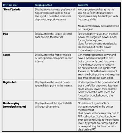 檢測模式是另一種幅度控製方式,可用於傳統的掃描頻譜分析儀,但不能用於基於FFT的分析儀。可分為普通、峰值、采樣或負峰值等模式,具體檢測模式決定了頻譜分析儀如何減少頻譜信息的,或者說如何壓縮頻譜信息。