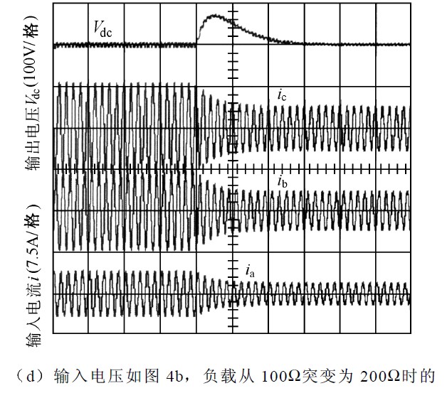 ③輸入缺相時,由於所缺相的電流必為0 ,由式(8 )和式(20 )可知,其他兩相的電流也必為0 .此時,整流器不能正常工作。