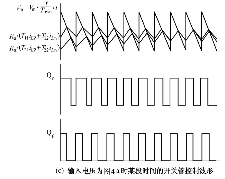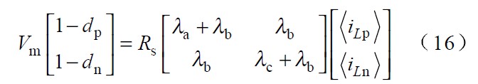 可以證明,式1 在任意區間的兩種開關順序都成立,並且隻要電路工作在連續導通的模式,該等式即能準確反映出穩態電路的輸入電壓、輸出電壓和占空比三者之間的固定關係,與所采用的控製方案無關。因此式1 即為該整流器的狀態方程。