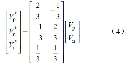 由於電網電壓可能存在各種幹擾,為使計算結果盡可能精確,可將一個或幾個周期內的n 個采樣電壓分為多組,取其中的兩組來計算相電壓不對稱係數。對式(9) 按該兩組相加,可得: