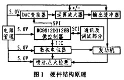 控製器由飛思卡爾(Freescale)公司的MC9SDG128微控製器擔任,該16位控製器擁有豐富的I/O接口以及SCI/SPI/IIC等總線控製器,操作信號通過串行接口發送和接收。MC9S12係列單片機是MC68HC12係列單片機的更新替代產品。這種單片機的中央處理器CPU12由以下三部分組成:算術邏輯單元ALU、控製單元和寄存器組。CPU外部總線頻率為8 MHz,內部運算速度可達25 MHz。尋址方式有16種。內部寄存器組中的寄存器、堆棧指針和變址寄存器均為16位。它具有很強的高級語言支持功能。
