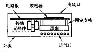 風扇M固定在電路板下方,風扇中心正對著放電器,相距15mm左zuo右you。風feng扇shan的de出chu風feng方fang向xiang應ying朝chao上shang,以yi便bian將jiang放fang電dian器qi產chan生sheng的de負fu離li子zi向xiang上shang吹chui到dao空kong氣qi中zhong。整zheng機ji應ying裝zhuang入ru絕jue緣yuan外wai殼ke中zhong,在zai外wai殼ke上shang麵mian正zheng對dui放fang電dian器qi的de位wei置zhi開kai一yi些xie孔kong縫feng作zuo為wei出chu風feng口kou,在zai外wai殼ke兩liang側ce靠kao近jin風feng扇shan的de地di方fang開kai孔kong作zuo為wei進jin氣qi口kou。12V電源線與汽車點煙器插頭相連接。