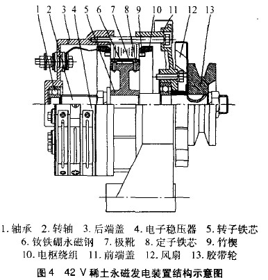 目mu前qian稀xi土tu永yong磁ci材cai料liao已yi經jing具ju備bei了le較jiao高gao的de性xing價jia比bi,現xian代dai電dian力li電dian子zi技ji術shu也ye為wei研yan製zhi出chu斬zhan波bo式shi的de電dian子zi穩wen壓ya器qi奠dian定ding了le基ji礎chu。因yin此ci,利li用yong稀xi土tu永yong磁ci材cai料liao和he現xian代dai電dian力li電dian子zi元yuan件jian研yan製zhi出chu結jie構gou簡jian單dan、發電效率高、壽命長的42V稀土永磁發電機具有較高的研究價值和廣闊的推廣前景。