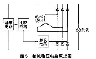 設計的釹鐵硼永磁發電裝置結構示意圖如圖4所示,還研製了三相半控橋整流穩壓電路(圖5)。該電路由三相半控橋整流電路、dianyaxinhaoquyangdianluhechufadianluzucheng。dangfadianjishuchudianyadiyumubiaowenyazhishi,dianziwenyaqiweisanxiangzhengliushuchu。dangfadianjishuchudianyagaoyumubiaowenyazhishi,dianyaxinhaoquyangdianluzidongshisanxiangbankongqiaozhengliudianlushunshiduankai,jiangdishuchudianyidangfadianjishuchudianyazaidiyumubiaowenyazhishi,sanxiangbankongqiaozhengliudianluzaihuifugongzuo,zhouerfushi。tongguozhengliu、斬波,保證了發電機輸出電壓穩定的直流電。
