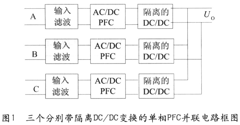 - 由三個分別帶隔離DC/DC變換的單相PFC並聯組成
