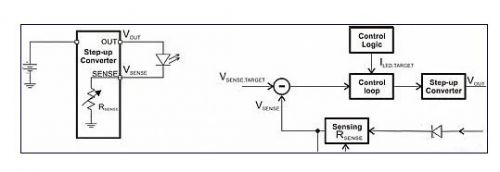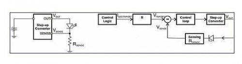 將閃光燈 LED 與一個電流檢測電阻串聯,然後通過一個升壓轉換器來驅動,這是一種簡單的方法。圖 1 描述了這種方法。