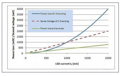 因此,更好的解決方案是一個在 LED 驅動器中的有源電流阱或者電流源,如圖 3 所示。我們可使用一種壓降和由此產生的功耗都得到降低的方法對內部電流檢測電阻進行調節,具體調節情況取決於 LED 電流的大小。如果為低 LED 電流,則壓降可以維持足夠的高以獲得精確的檢測信號。