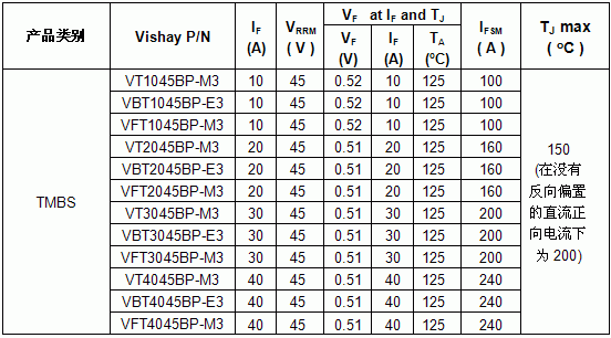 TMBS® TrenchMOS:Vishay發布12個采用不同封裝的45V 勢壘肖特基整流器