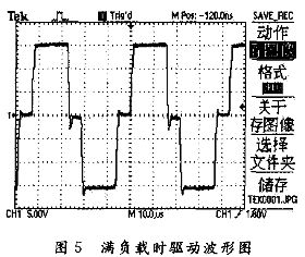 由圖3和圖4比較可以看出,在較小延時的情況下,應把尖峰減到最小。從圖3可以看出,要減小的尖峰主要是負脈衝後沿的過衝尖峰,因為這個尖峰極有可能達到IGBT的開啟電壓(Vth),這樣就會造成同一橋臂的兩個IGBT直通;同時由圖5可以看出,在滿負載(600 V/30 A)狀態下,驅動波形具有很好的穩定性,而且沒有大的尖峰,這就保證了IGBT穩定、安全的工作。