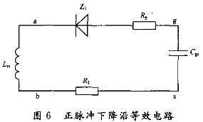驅動等效電路如圖6所示。其中,Lm為變壓器次邊的勵磁電感;Z1為穩壓管(其反向相當於一個二極管,所以圖中就用一個二極管來代替);Rg為驅動電阻,Cgs為IGBT的柵極和源極之間電容;R1為線路等效電阻。由等效電路可知: