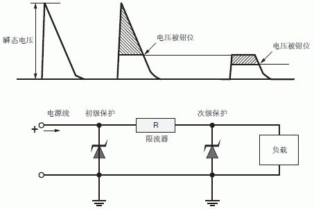 在實際的應用電路中,處理瞬時脈衝對器件損害的最好辦法,就是將瞬時電流從敏感器件引開。為達到這一目的,將TVS在線路板上與被保護線路並聯。這樣,當瞬時電壓超過電路正常工作電壓後,TNS將發生雪崩擊穿,從而提供給瞬時電流一個超低阻抗的通路,其結果是瞬時電流通過TVS被引開,從而避開被保護器件,並且在電壓恢複正常值之前使被保護回路一直保持截止電壓。在此之後,當瞬時脈衝結束以後,TVS二極管再自動恢複至高阻狀態,整個回路進入正常電壓狀態。