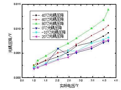 (1)光電繼電器的誤差。guangdianjidianqidetexing,shouwenduhedaotongneizudeyingxiangdoujiaoduo,weileyanzhengguangdianjidianqidaozhideceliangwucha,zaibutongwendutiaojiexiaduiguangdianjidianqihedianyajiancedianlujinxingleshiyan,zaiguangdianjidianqishangyajiangrutu3所示,可以看出測試電壓越高,光電繼電器上的壓降越大,最大差異約6mV左右,而溫度越高,壓降也越大,最大差異約7mV左右。