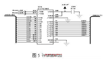 通過軟件參與設置,很容易得到全頻段內的預置誤差數據。對於2-20GHz的微波振蕩器,如果每隔5MHz設置補償一個點,那麼存儲器至少需要3600個地址空間,在此選擇8k×8靜態存儲器芯片,存儲空間滿足要求。在時鍾的同步控製下,地址生成器產生對應地址,該係列數據被存入RAM中,電路如圖5所示。