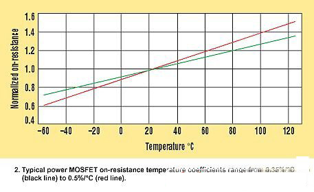對於開關MOSFET和同步整流器兩者,都是選擇作為此迭代過程開始點的最大允許裸片結溫(TJ(HOT))。大多數MOSFET數據參數頁隻給出25°C的最大RDS(ON),,但近來有一些也提供了125°C的最大值。MOSFETRDS(ON)隨著溫度而提高,通常溫度係數在0.35%/°C至0.5%/°C的範圍內(圖2)。如果對此有所懷疑,可以采用更悲觀的溫度係數和MOSFET在25°C規格參數(或125°C的規格參數,如果有提供的話)計算所選擇的TJ(HOT)處的最大RDS(ON):RDS(ON)HOT=RDS(ON)SPEC×[1+0.005×(TJ(HOT)?TSPEC)]