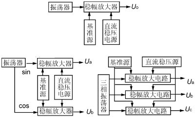 根據輸出交流電源的相數,穩頻電源可分為單相式,兩相正交式和三相對稱式。單一輸出量的穩頻穩壓源由於各相間的相移恒定,因此不需要移相調節電路。當輸出物理量既要求有電壓回路,還要求有電流回路,且電壓與電流的相位差要求既能調節又能穩定以適應不同負載時,則相應的穩頻穩壓/穩流電源應包括電壓和電流輸出回路。其結構如圖1所示。