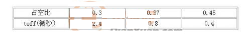 該電路具有以下優點:①電路結構簡單可靠,實現了隔離驅動。②隻需單電源即可提供導通時正、關斷時負壓。③占空比固定時,通過合理的參數設計,此驅動電路也具有較快的開關速度。該電路存在的缺點:一是由於隔離變壓器副邊需要一個假負載防震蕩,故該電路損耗較大;二是當占空比變化時關斷速度變化加大。脈寬較窄時,由於是貯存的能量減少導致MOSFET柵極的關斷速度變慢。表1為不同占空比時關斷時間toff(驅動電壓從10伏下降到0伏的時間)內變化情況。