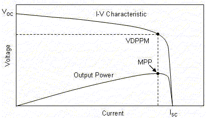 在zai大da多duo數shu應ying用yong中zhong,人ren們men期qi望wang從cong太tai陽yang能neng電dian池chi獲huo取qu盡jin可ke能neng多duo的de功gong率lv。因yin為wei輸shu出chu功gong率lv是shi輸shu出chu電dian壓ya和he電dian流liu的de乘cheng積ji,有you必bi要yao確que定ding電dian池chi的de哪na一yi部bu分fen的de工gong作zuo區qu域yu產chan生sheng的de輸shu出chu電dian壓ya和he電dian流liu的de乘cheng積ji的de數shu值zhi最zui大da,這zhe一yi點dian被bei稱cheng為wei最zui大da功gong率lv點dian(MPP)。在一種極端情況下,輸出電壓為其最大數值(VOC),但是,輸出電流為零;在其它極端情況下,輸出電流位其最大值(ISC),但是,輸出電壓為零。在兩種情況下,輸出電壓和電流的乘積都是零。因此,MPP必須位於兩種極端情況之間的某處。