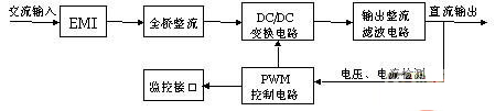 ⑷ 高頻模塊的內部原理框圖如圖4所示。單個高頻模塊本身就是一個完整的直流係統。模塊輸出精度高,穩壓精度、穩流精度、紋波係數都能達到0.5%以下。而且,轉換效率高。高頻模塊內部采用高頻變壓器,體積非常小巧,省去了相控係統中笨重的隔離變壓器。