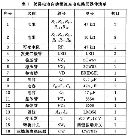2 簡易充電器總電路原理圖及元器件清單