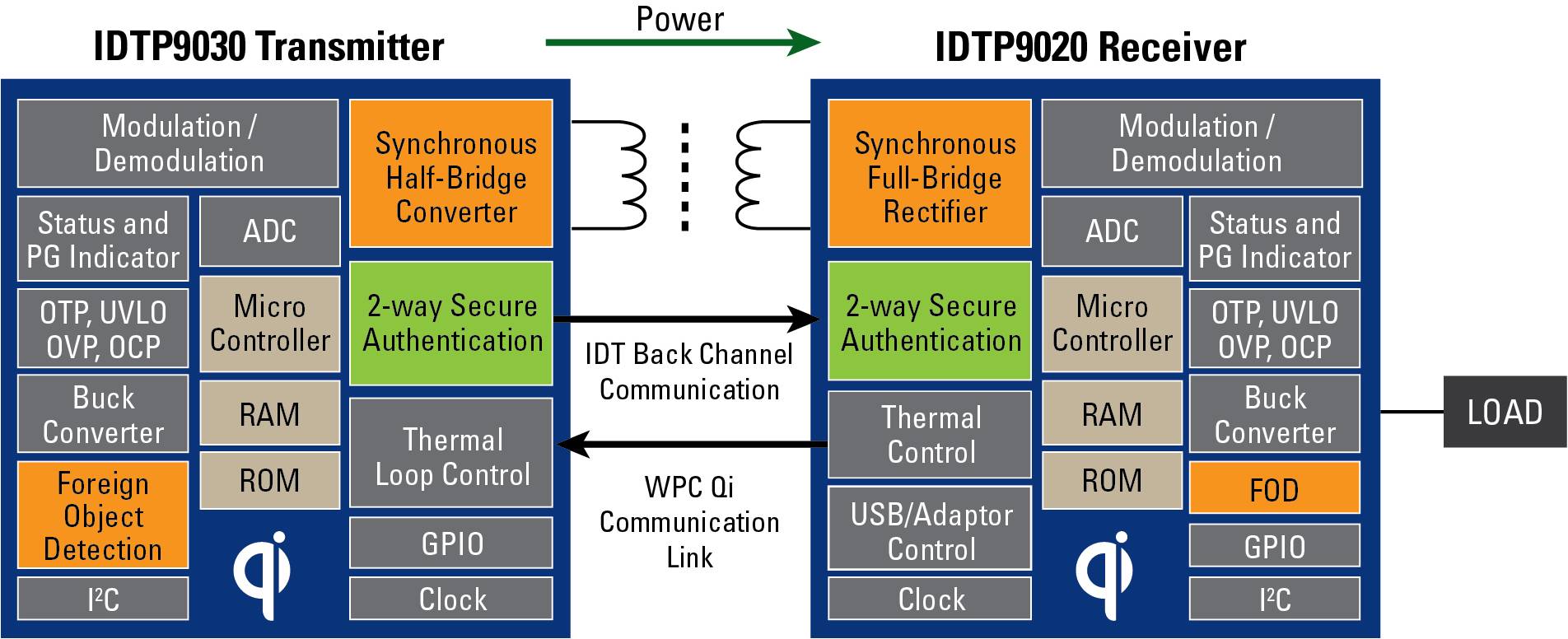 IDTP9030 和 IDTP9020 提供了無線電源發送器和接收器解決方案,專為滿足無線充電聯盟(WPC)的 Qi 標準而設計,可保證與其他滿足 WPC Qi 標準器件的互操作性。發送器和接收器均能夠進行“多模式”操作,可支持 Qi 標準和專用格式以增加功能、改進安全和提高功率輸出能力。內置的協議檢測可實現 Qi 與專用模式間的動態轉換,從而實現平穩過渡和可靠的用戶體驗。這些器件可用於大量移動應用以進行便利和輕鬆的電池充電。