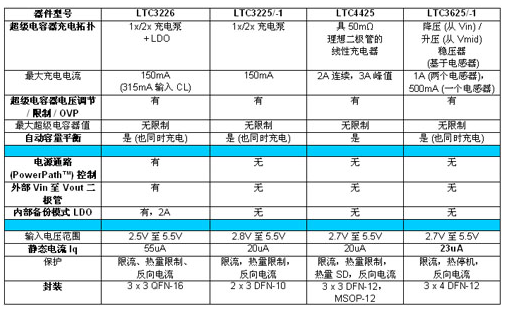 表 2 顯示了對淩力爾特超級電容器充電器係列各款器件的比較。