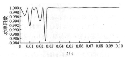 PWM 整流器功率因數波形如圖9所示。由圖9可知,電路功率因數始終大於0.985,且工作0.03s後功率因數能達到1.