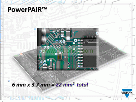 PowerPAIR就是這樣的一種封裝類型,這種封裝的外形尺寸比單片功率6 x 5封裝 (PowerPAK SO-8)小,最大電流可以達到15A。在筆記本電腦中,一般象這麼大的負載電流都會采用兩個功率6 x 5封裝,算上導線和打標簽的麵積,以及兩個器件的位置擺放,占用的麵積超過60mm2。這種雙芯片功率封裝的尺寸是6.0mm x 3.7mm ,在電路板上占用的麵積為22mm2。能把電路板空間減少63%對電源工程師是很有幫助的,因為他們給電源電路設計的空間是越來越少了。用傳統的SO-8雙芯片功率型封裝,是沒法取得這麼大的好處的。