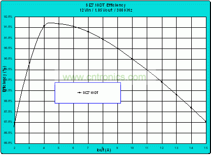 VIN = 12 V, VOUT = 1.05 V, VDRIVE = 5.0V, fsw = 300 kHz, IOUT max. = 15 A