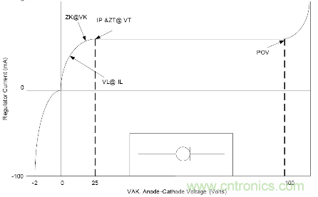 它在某一個電壓範圍內有一段恒流區間, 在這個區間, 流經的電流幾乎不變, VL為到達IL的電壓值, IL大約為0.8Ip.