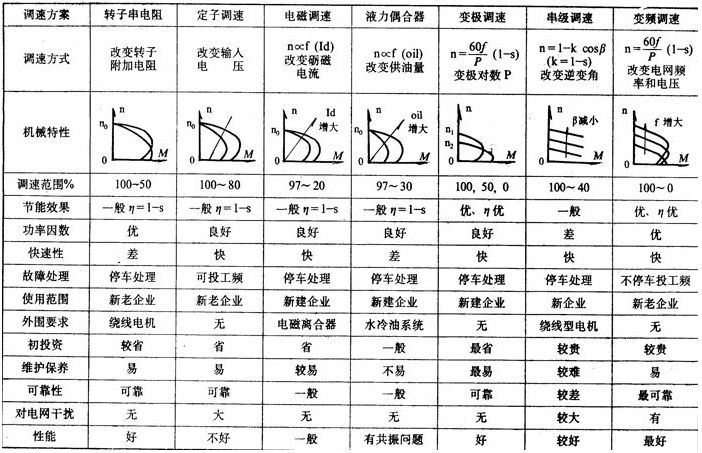 各種交流電機調速方式比較表