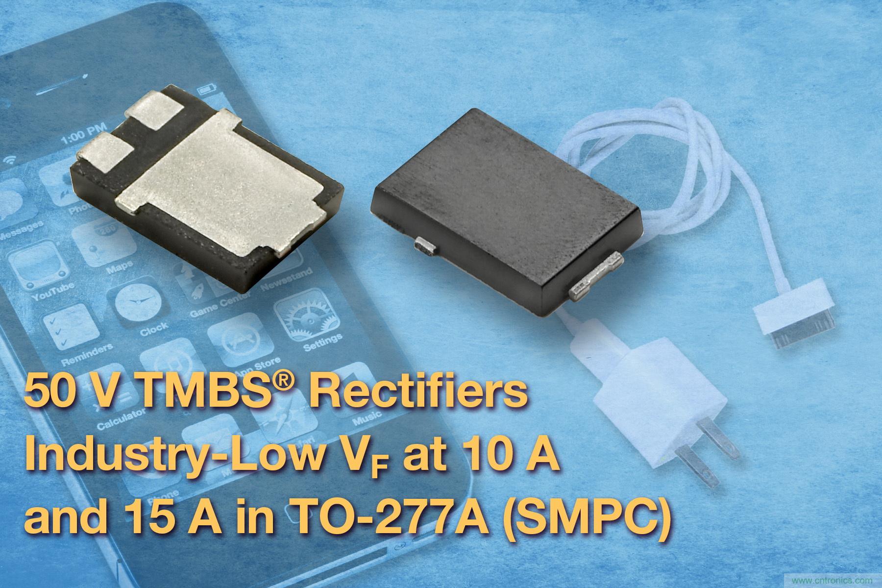 新款50V V10PN50和V15PN50 TMBS整流器現可提供樣品,並已實現量產,大宗訂貨的供貨周期為十八周。
