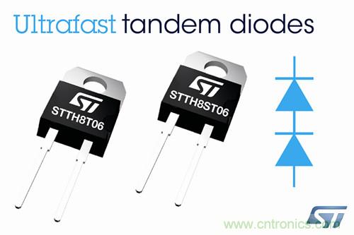 ST第二代600V、8A/12A超高速串聯二極管包括平均正向電流為8A的STTH8T06DI和STTH8ST06DI與 12A的STTH12T06DI,屬於意法半導體600V串聯二極管係列。新產品的正向湧流峰值與超高速二極管相同,確保穩健性和可靠性,工作結溫範圍寬達 -40°C到 175°C。
