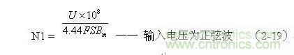 (2-18)式雖然是用於計算雙激式開關變壓器初級線圈N1繞組匝數的公式,但隻需把式中的某個別參數稍微進行變換或修改,同樣可以用於計算其它波形電源變壓器初級線圈匝數的公式。