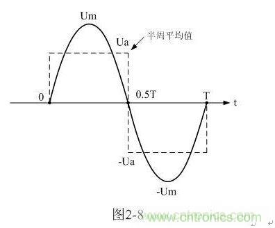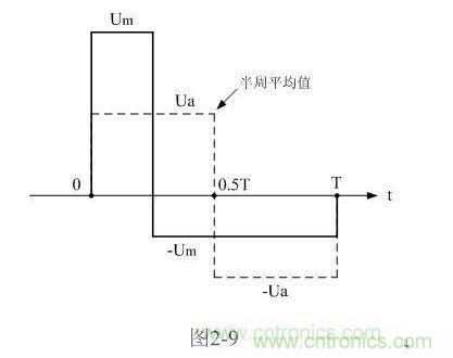 順便說明,這裏的半周平均值,並不是一般意義上的正、負半周波形完全對稱交流電壓正半周、或負半周的平均值,這裏的半周平均值是泛指整個周期中的正半波電壓或負半波電壓在半個周時間內的平均值。如圖2-9所示。另外,(2-19)、(2-20)式中的半周平均值Ua和Ua-與第一章中(1-70)、(1-71)式定義的半波平均值Upa和Upa-也稍有一點差別,Ua和Ua-與Upa和Upa-的差別,主要是在分母上。
