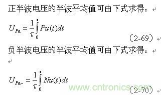(2-69)、(2-70)式中,Upa和Upa-分別為各種脈衝波形的正、負半波平均值;Pu(t)和Nu(t)分別為各種脈衝波形的正波形函數(正半周)和負波形函數(負半周),τ為正、負脈衝寬度。大部分雙極性交流脈衝,其正、負半波平均值的絕對值都相等,但符號相反。