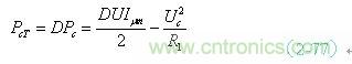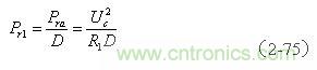 (2-75)式中,Pr1為,變壓器初級線圈加電壓期間,勵磁電流 為反激輸出存儲的功率;Pra為反激輸出功率的全波平均值;Uc為濾波電容兩端的電壓;D為輸入脈衝的占空比,