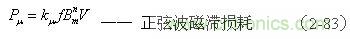 (2-83)式中, 為輸入電壓為正弦波時變壓器鐵芯的磁滯損耗[W]; 為與鐵磁物質有關的係數(由試驗決定);