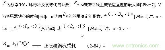 (2-84)式中, Pb為輸入電壓為正弦波時變壓器鐵芯的磁滯損耗[W];Kb為與鐵磁物質電阻率、截麵積、體積、形狀有關的係數(由試驗決定);