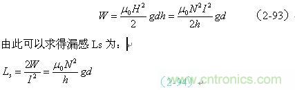 (2-93)、(2-94)式中,Ls為漏感; 為空氣的導磁率,在CGS絕對單位製中 ,在SI國際單位製中 (H/m,亨利/米);g為兩個線圈之間的平均周長;d為兩個線圈之間的距離;h為兩個線圈之間的高度,N為需要計算漏感線圈的匝數,可以是N1或N2。