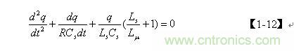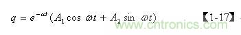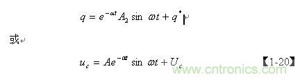 前麵已經指出,齊次微分方程【1-12】式僅表示電容Cs充滿電後,輸入電壓等於0時,電容兩端電壓或存儲電荷隨時間變化的過程,即,當t = 0時,q從最大值開始隨時間變化的過程。但齊次微分方程【1-12】式並不完全表示電容Cs充、放電的全過程,我們仔細觀察【1-17】式便知:在LC電路中,當t = 0時,如果q 為最大值,電容一定是按餘弦規律放電;如果 q為最小值,則電容一定是按正弦規律充電。因此,我們還需要根據初始條件來對【1-10】非齊次微分方程式進一步求解。