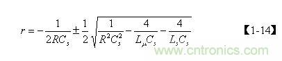 【1-12】式表示,電容Cs充滿電後,輸入電壓等於0時電容兩端電壓或存儲電荷隨時間變化的過程。對【1-12】式求解,需要先求解其特征方程,其特征方程為: