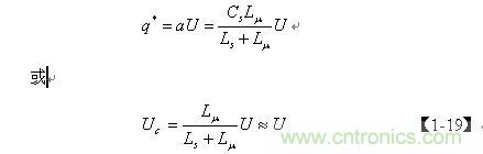 上式中的電壓 Uc實際上就是電容Cs兩端電壓的半波平均值Upa。它等於輸入電壓U在漏感Ls 與勵磁電感Lu 組成的串聯電路中勵磁電感 Lu兩端的分壓的半波平均值。由於漏感 Ls與勵磁電感Lu 相比非常小,因此,可以把 Uc看成與輸入電壓U基本相等。