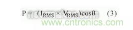 PF還等於線路電流與電壓之間的相角(θ)的餘弦值;從這個角度來講,式2可以重新寫成以下形式:
