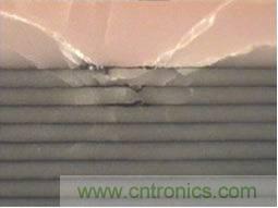 如圖3所(suo)示(shi),斷(duan)裂(lie)通(tong)常(chang)沿(yan)著(zhe)一(yi)層(ceng)或(huo)兩(liang)層(ceng)介(jie)質(zhi)層(ceng)貫(guan)穿(chuan)整(zheng)個(ge)電(dian)容(rong)的(de)中(zhong)部(bu)。大(da)多(duo)數(shu)的(de)解(jie)決(jue)方(fang)案(an)是(shi)將(jiang)多(duo)個(ge)電(dian)容(rong)器(qi)通(tong)過(guo)添(tian)加(jia)引(yin)腳(jiao)進(jin)行(xing)疊(die)加(jia),從(cong)而(er)在(zai)給(gei)定(ding)尺(chi)寸(cun)下(xia)提(ti)高(gao)容(rong)值(zhi),但(dan)這(zhe)需(xu) yaoxiaohaodaliangrenli,huafeijiaoduochengben,binghuichanshengkekaoxingwenti。lingwaidejiejuefanganshiyongteshudianjiezhipeifang,dantongshiyixishengjiedianchangshuzuoweidaijia,bingyingxiangzuizhongkehuodederongzhidaxiao。