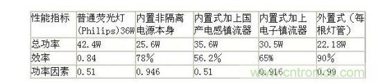 也就是說,直接替換的結果是效率大大降低,對於國產電感鎮流器,效率隻有56.2%。隻比普通熒光燈節電6.8W。