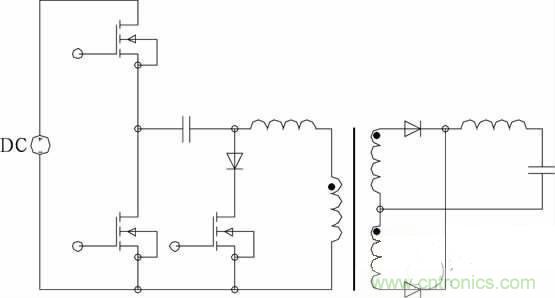 不對稱脈衝PWM 控製,其下管下降沿與上管的前沿互補,上管可實現ZVS。隻(zhi)要(yao)設(she)計(ji)的(de)占(zhan)空(kong)比(bi)較(jiao)小(xiao),無(wu)需(xu)其(qi)它(ta)措(cuo)施(shi)即(ji)使(shi)工(gong)作(zuo)在(zai)較(jiao)高(gao)頻(pin)率(lv)下(xia)開(kai)關(guan)損(sun)耗(hao)也(ye)很(hen)小(xiao)。變(bian)壓(ya)器(qi)直(zhi)流(liu)偏(pian)磁(ci),除(chu)占(zhan)空(kong)比(bi)端(duan)點(dian)外(wai),偏(pian)磁(ci)電(dian)流(liu)小(xiao)於(yu)不(bu)對(dui)稱(cheng)半(ban)橋(qiao)。寬(kuan)範(fan)圍(wei)適(shi)用(yong)性(xing)優(you)於(yu)傳(chuan)統(tong)的(de)不(bu)對(dui)稱(cheng)半(ban)橋(qiao)。低(di)壓(ya)大(da)電(dian)流(liu)的(de)應(ying)用(yong)場(chang)合(he)有(you)一(yi)定(ding)的(de)優(you)勢(shi)。