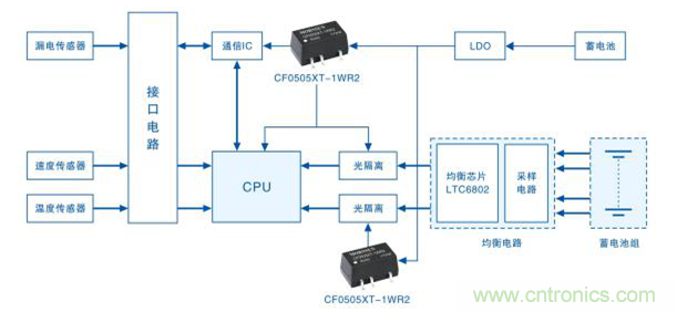 針對汽車行業的高可靠要求,以及BMS在整車係統中的“心髒”作用,金升陽率先推出全球範圍內汽車級DC_DC電源模塊CF0505XT-1WR2,填補了電源行業在BMS電源方麵的空白,該係列產品具有以下特點: