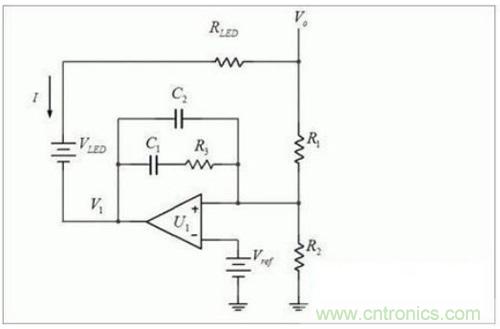 因為Vref 上電後就是穩定的了,所以被Rled*(R1+R2)除以後,很小,視為0。