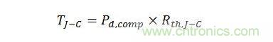 元件結點(或內核)和外殼之間的溫差可以用下麵這個公式計算: